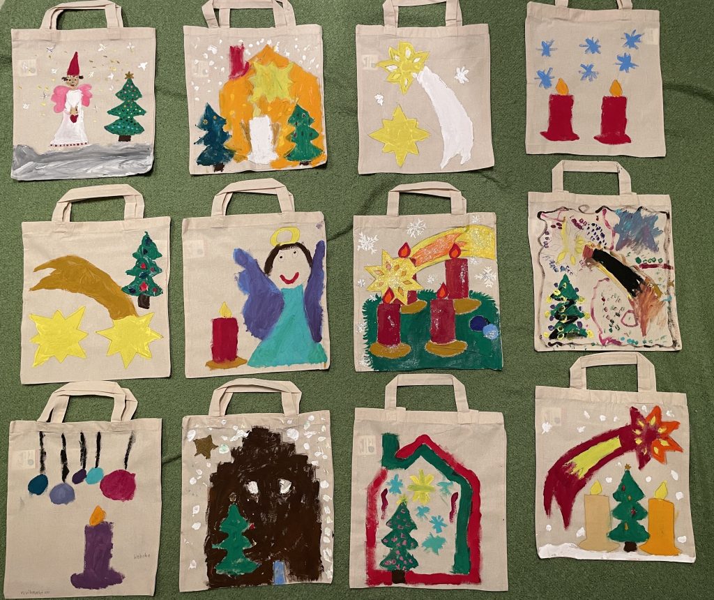 Die 2d gestaltet Taschen, die beim Laufamholzer Weihnachtsmarkt verkauft werden.