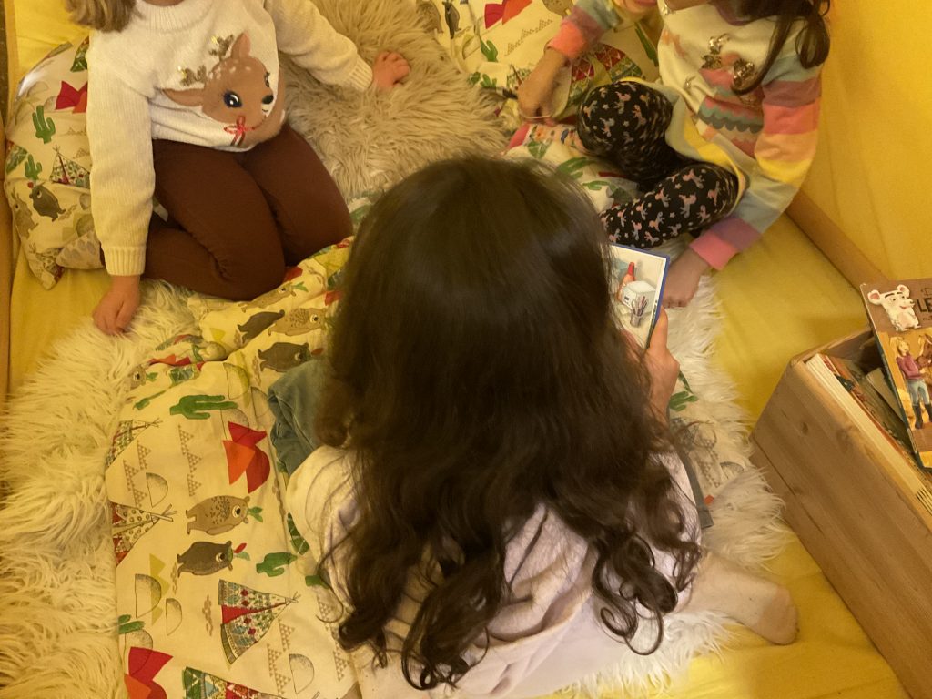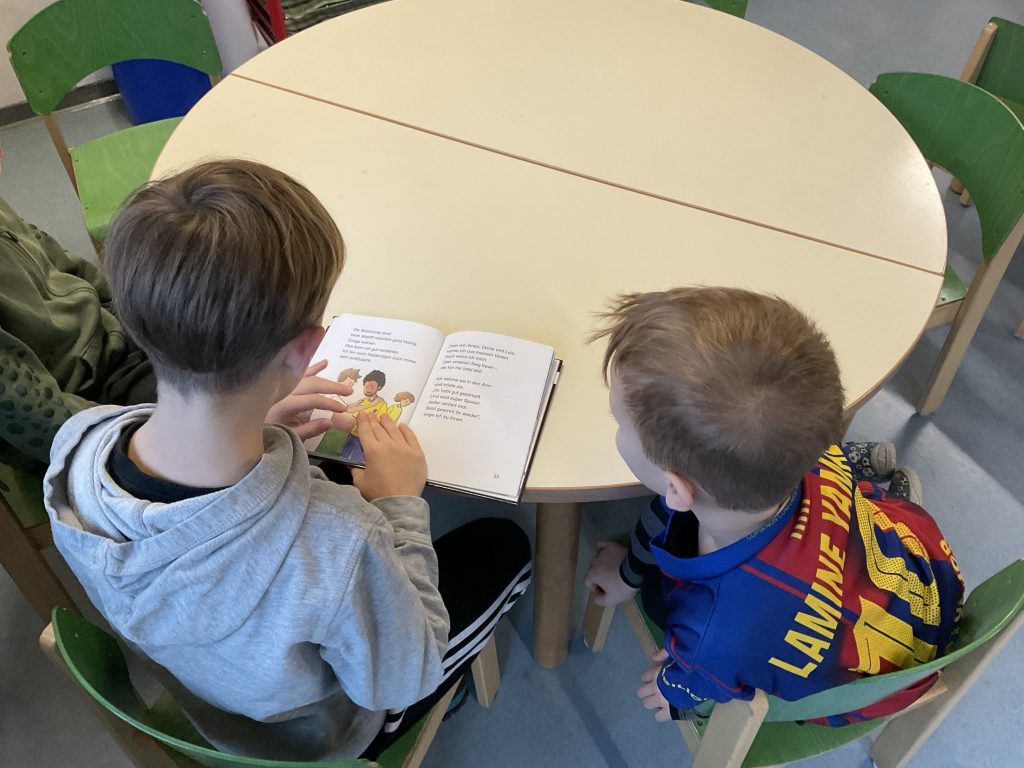 Am Donnerstag, den 4. Dezember machten sich alle Zweitklässler und Zweitklässlerinnen auf zu den Kindergärten in Schulnähe. Viele freuten sich sehr bekannte Gesichter wiederzusehen. Die „Kleinen“ begrüßten uns mit einem Willkommenslied. Anschließend durfte suchte sich jedes Schulkind ein bis zwei Kindergartenkinder zum Vorlesen. Natürlich kam auch die Spielzeit nicht zu kurz.