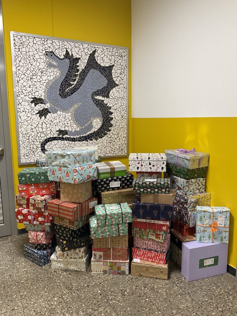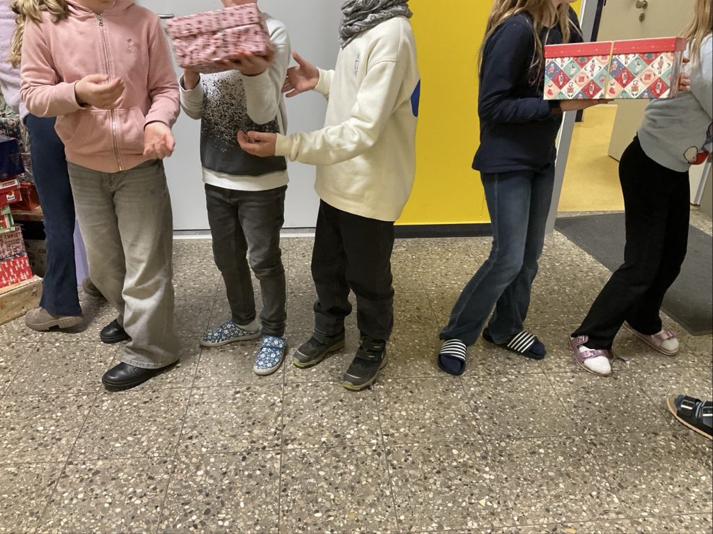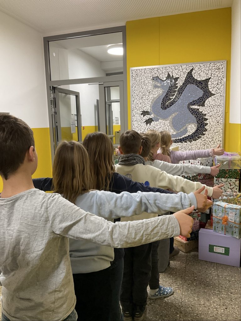 Auch in diesem Jahr beteiligten wir uns wieder an der Aktion „Geschenk mit Herz“ und setzen uns damit zum Ziel, zahlreichen benachteiligten Kindern in Bayern und vor allen auch Osteuropa eine Weihnachtsfreude zu bereiten. Gemeinsam mit der Hilfe vieler Familien und Kinder unserer Grundschule konnten wir am Donnerstag, den 4. Dezember 107 Päckchen auf ihre Reise schicken. Vielen lieben Dank an alle, die sich beteiligt haben!