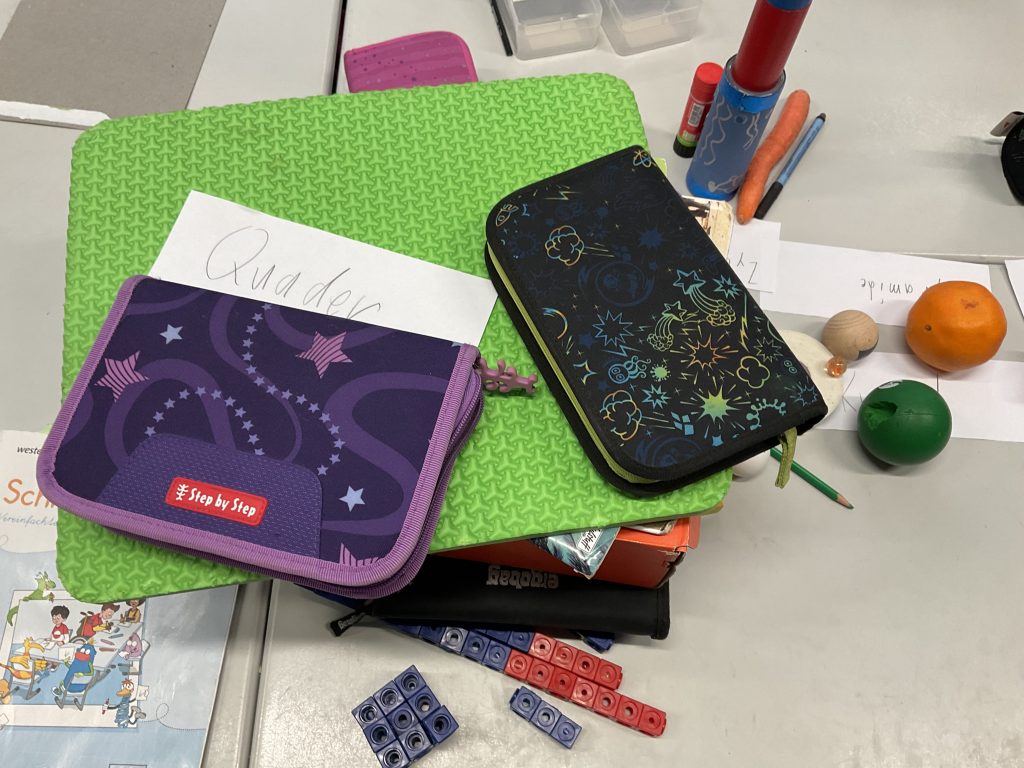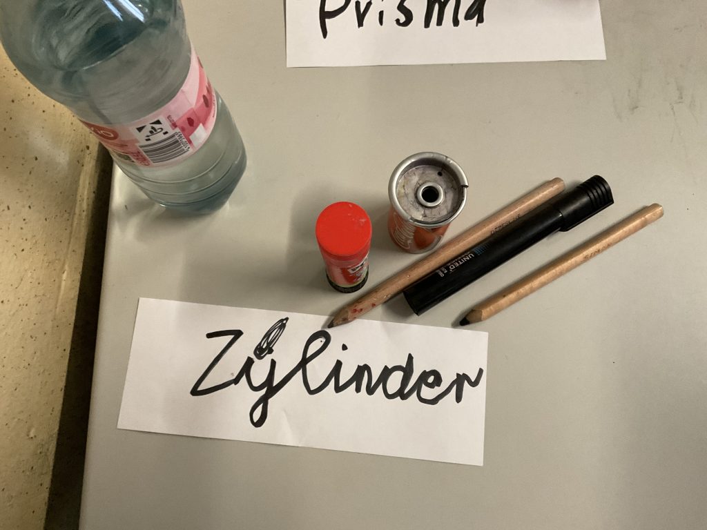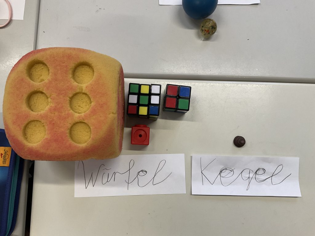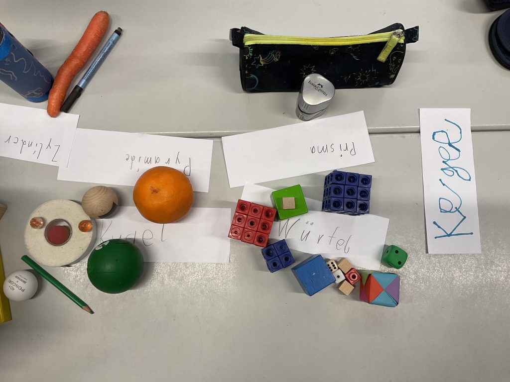 Zuvor haben sie Alltagsgegenstände nach ihren geometrischen Körperformen sortiert: